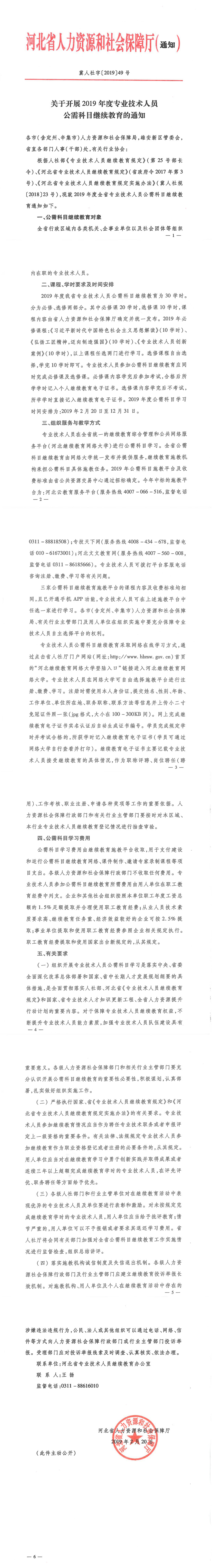 关于开展2019年度专业技术人员公需科目继续教育的通知